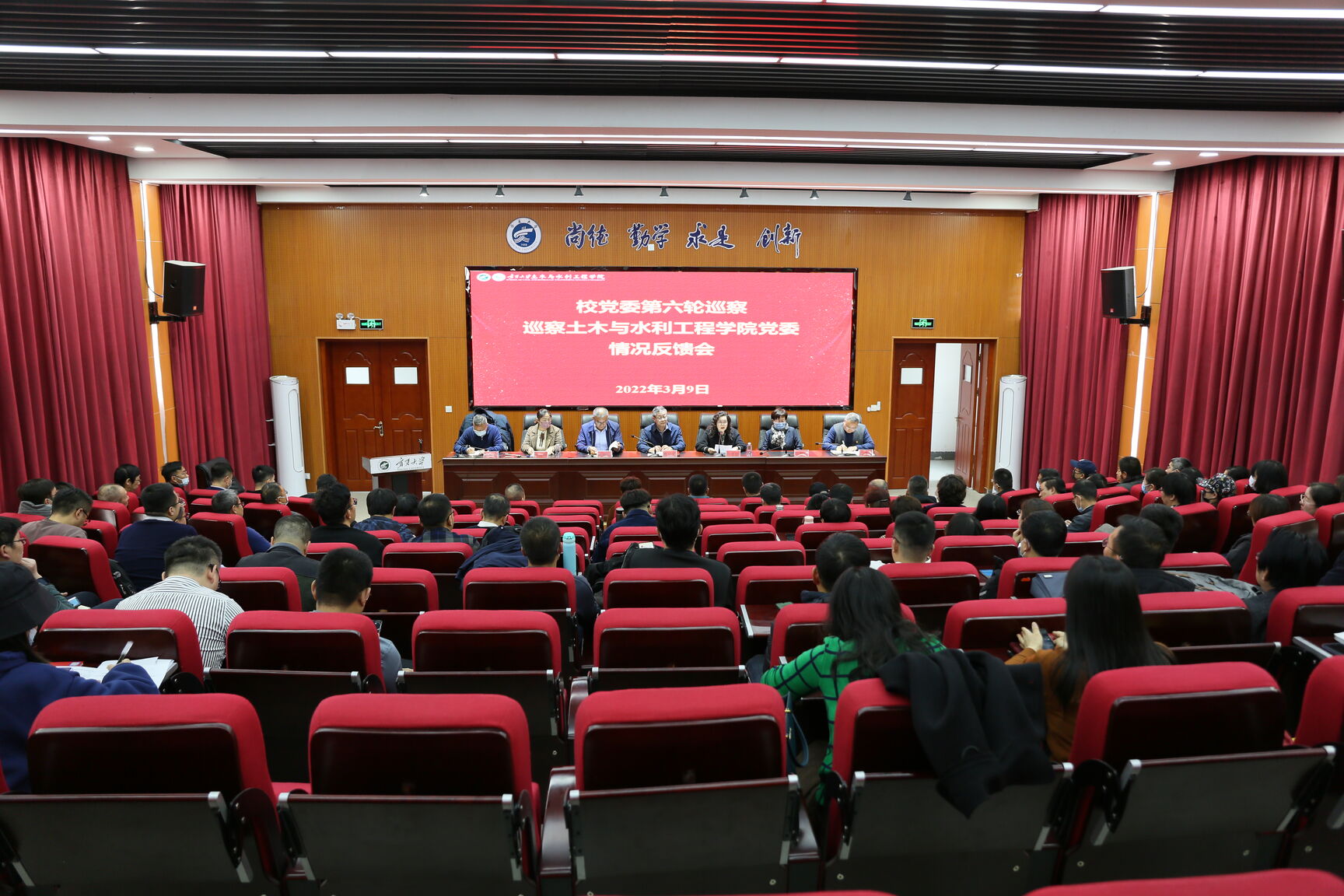 知行楼阶三报告厅召开了巡察情况反馈会。校党委常委纪委书记周运生、第六轮巡察第二组组长及组员出席了会议。学院班子成员及全院教职工参加了会议。会议由校党委巡察(督察)办公室主任井惠敏主持。