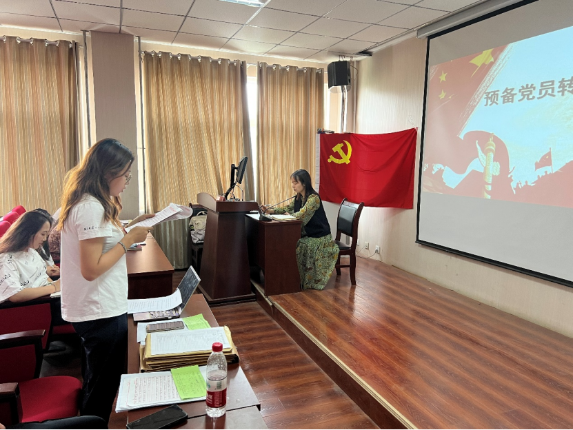 最后,党支部书记梁冀宁对转正的5名同志提出了新的要求,在成为正式党员后,要在学习、生活、工作等各方面更加严格要求自己,改正缺点、发扬优点,给同学们树立良好的模范带头作用形象,争做合格党员。