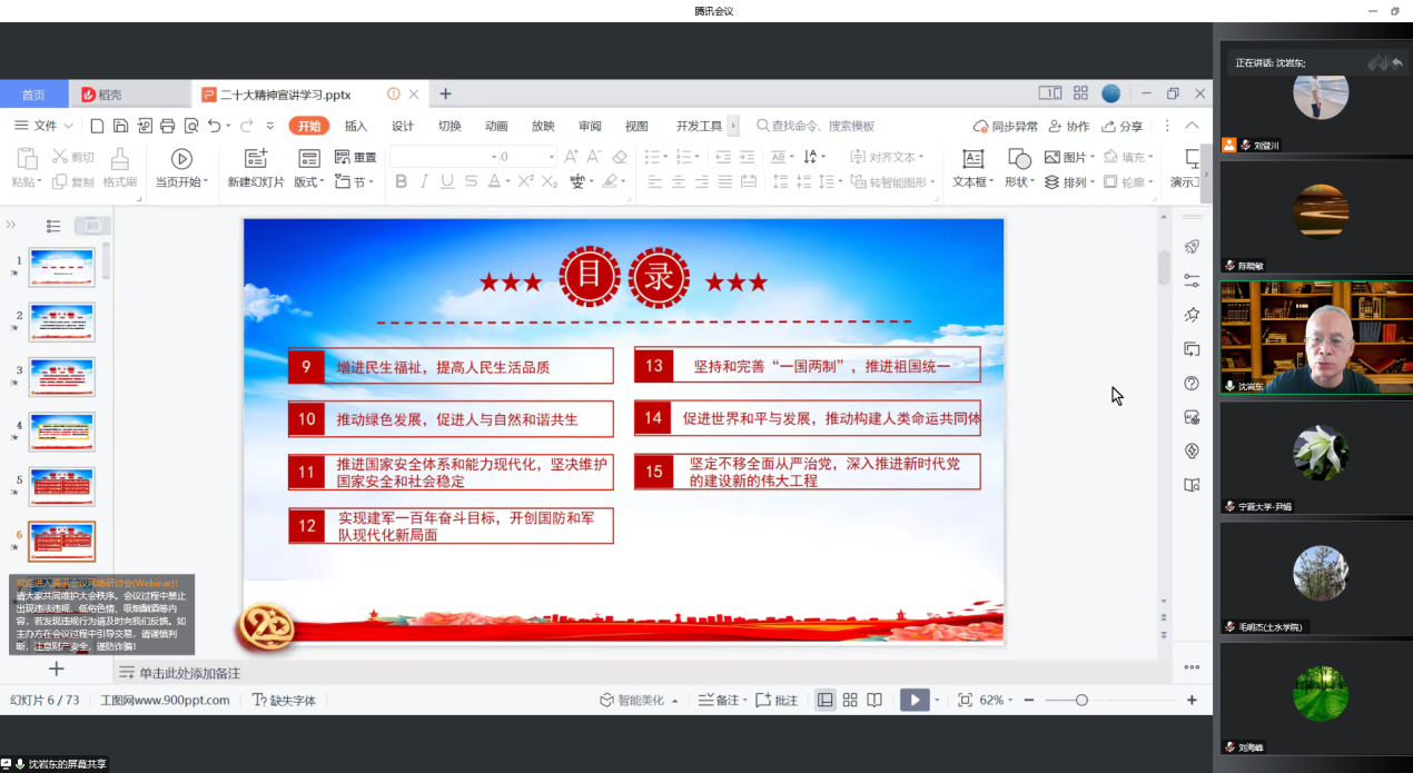 2022年12月14日下午,我院邀请宁夏大学马克思主义学院党委书记沈岩东做题为“党的二十大精神宣传学习”线上主题宣讲。全体教职工参加,学院党委书记陈晓敏主持。