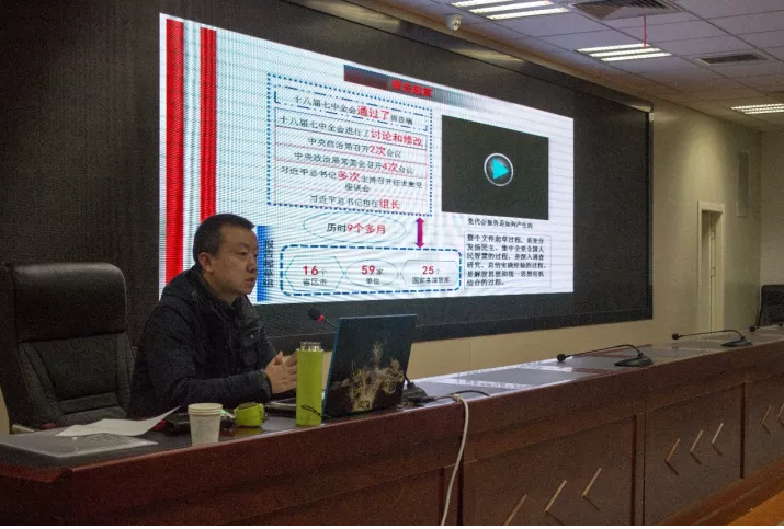 中国梦·民族梦·复兴梦为深入学习宣传党的十九大精神,全面贯彻习近平新时代中国特色社会主义思想,引领广大干部群众切实把思想和行动统一到党的十九大精神上来,把力量凝聚到实现党的十九大确定的各项目标上来,经校党委研究决定在全校师生中开展宣讲党的十九大精神活动。2017年11月20日晚,我校马克思主义学院副院长党锐锋老师在文萃校区L楼国防生之家为土木与水利工程学院16级本科生及全体研究生开展党的十九大精神宣讲活动。