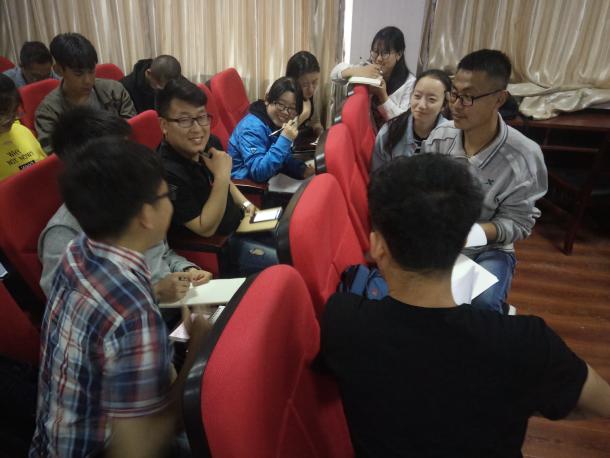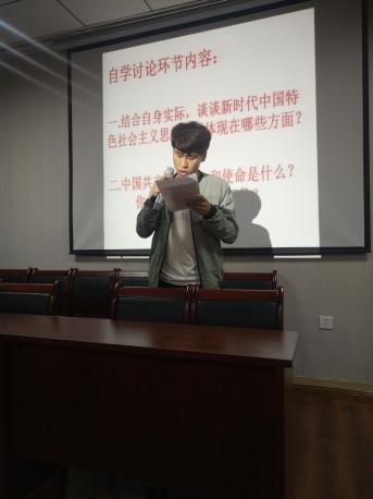 讨论开始,主持人抛砖引玉,针对第一个问题提出了自己的见解。本期学员分成6个小组就这两个问题进行讨论和发言。其中,杨佳豪同学谈到,关注国家发展才能促进自身发展的观点得到大家一致赞同。何军同学分别从自己身边的精准扶贫,家乡的小康建设以及学校的本科教学评估分别阐述自己理解的习近平新时代中国特色社会主义思想。李昱甫同学从办好人民满意的教育,专业方向的绿色建筑和装饰性建筑相结合,大学生的学习与学校教学评估分别表达中国共产党的初心与使命。