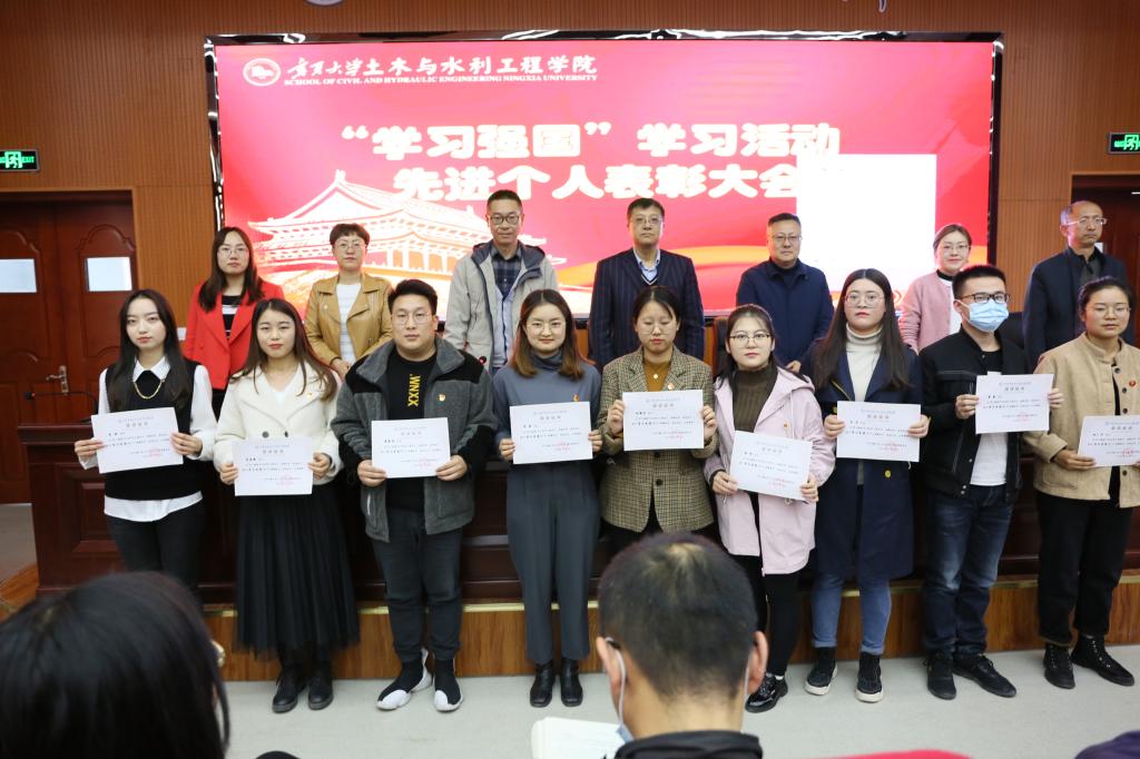 为进一步激发党员对“学习强国”学习的兴趣和热情,营造更加浓厚的学习氛围,土木与水利工程学院“学习强国”学习活动先进个人表彰大会2020年11月4日14时,在知行楼三楼阶梯教室召开。学院党委书记张晓天、院长毛明杰、副书记苏宇静、柳松洁、副院长尹娟、刘海峰、党委委员王娜出席本次会议,全体师生党员参加。会议由苏宇静同志主持。