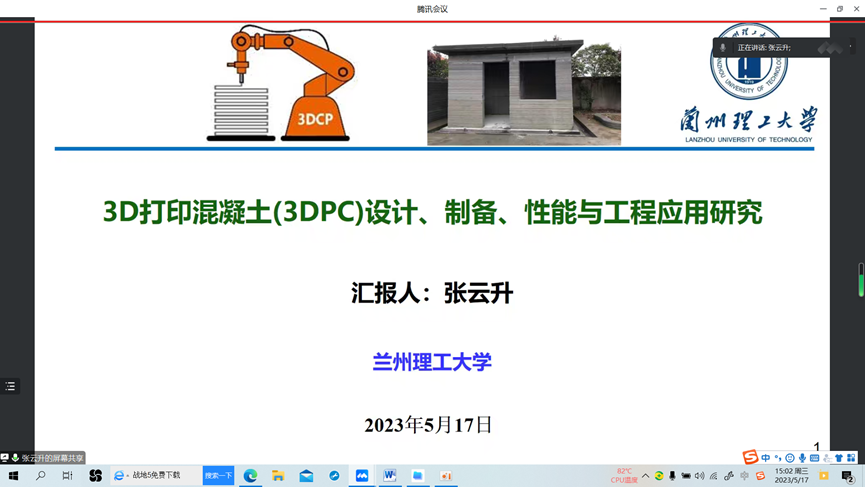 师生做了题目为“3D打印混凝土(3DPC)设计、制备、性能与工程应用研究”的线上学术报告。报告会由毛明杰院长主持,快乐8