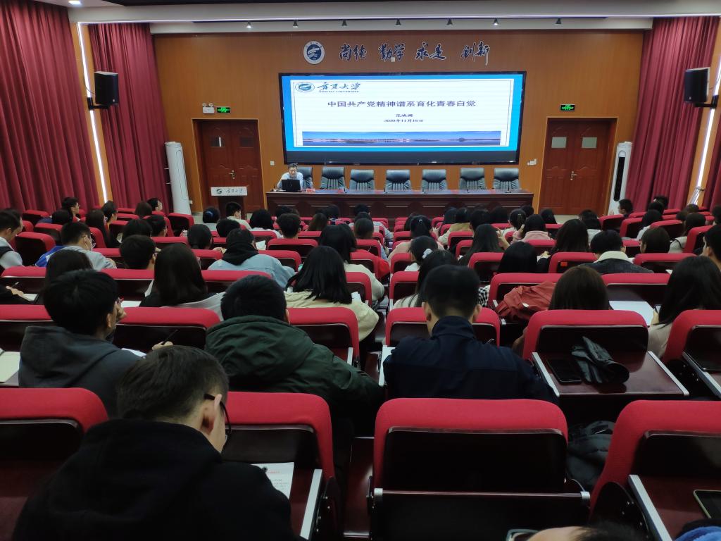第十二期党员发展对象与第三十三期入党积极分子培训班第三次专题授课于知行楼三阶会议室开展。此次授课由土木本科党支部书记何涛老师主持,马克思主义学院院长范映渊教授围绕《中国共产党精神谱系育化青春自觉》进行主讲,2020年秋季学期入党积极分子、2020年下半年党员发展对象以及各研究生支部全体党员参加了此次授课。