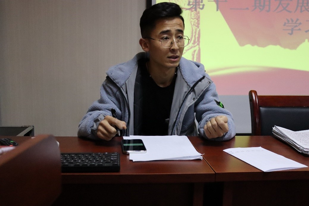 第十二期党员发展对象与第三十三期入党积极分子培训班学员在知行楼五楼会议室进行了阶段性讨论交流。讨论分别由党建小组成员宋鑫和何军主持,学工办辅导员何涛老师、2020年秋季学期积极分子和2020年下半年发展对象参加。