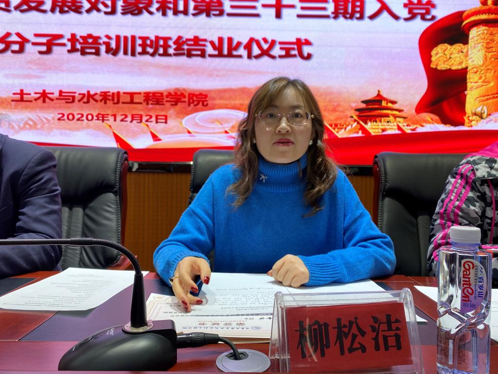 2020年12月2日12:30,土木与水利工程学院第十二期党员发展对象和第三十三期入党积极分子培训班结业仪式在知行楼三阶举行。会议由学生办公室何涛老师主持,学院党委书记张晓天老师、党委副书记柳松洁老师、各学生党支部书记、2020年秋季学期入党积极分子、2020年下半年党员发展对象全体学员参加了本次结业仪式。